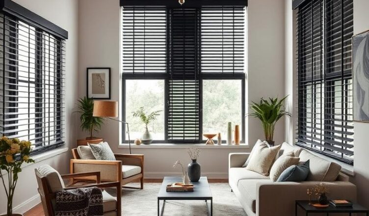 Jaki styl wnętrza pasuje do czarnych drewiennych żaluzji?