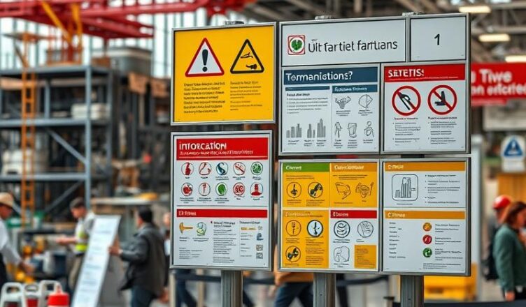 - na budowach – pełnią rolę informacyjną i ostrzegawczą, dostarczając informacje na temat inwestycji, numerów alarmowych oraz zasad bezpieczeństwa i higieny pracy (BHP),